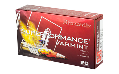 Featuring the industry leading polymer tipped Hornady® V‑MAX® bullet that delivers match accuracy and rapid fragmentation, Superformance® Varmint ammunition from Hornady® extends current varmint cartridge efficiency and performance. Optimal results are achieved in all firearms, and Superformance Varmint ammunition is safe to use in all action types, including semi‑autos.